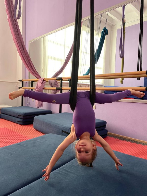 Очень хорошая школа воздушной гимнастики. Много различных акций и раскрывают личность ребенка!