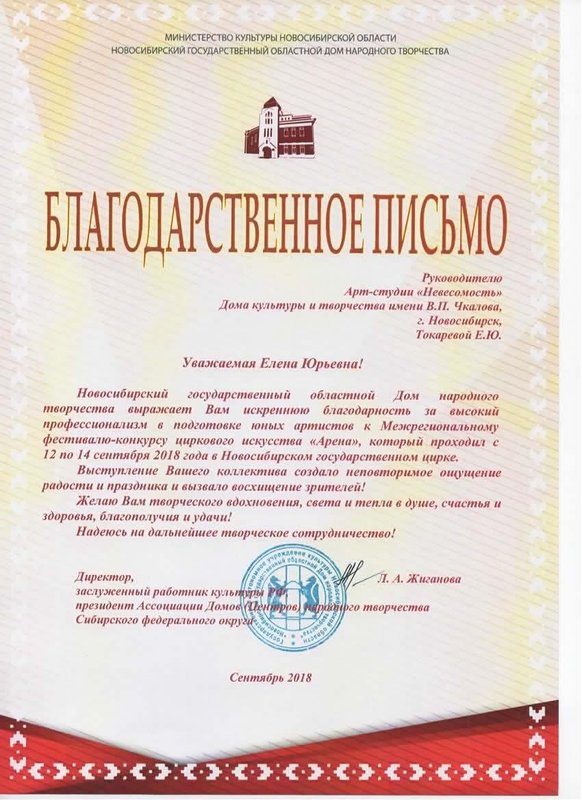 Моя дочь занимается в цирковой школе акробатики и мне очень нравится, что персонал там приветливый. Дочке тоже очень нравится ходить на тренировки - она буквально бежит туда. Что уже большой плюс, потому что в другой школе такого желания у нее не было. Думаю, это заслуга хорошего тренера, Елены Юрьевны, которая помогает ребенку добиваться высоких успехов. Моя дочь так заинтересовалась этим видом спорта, что занимается им уже 12 лет и сейчас готовится сдавать на тренера.