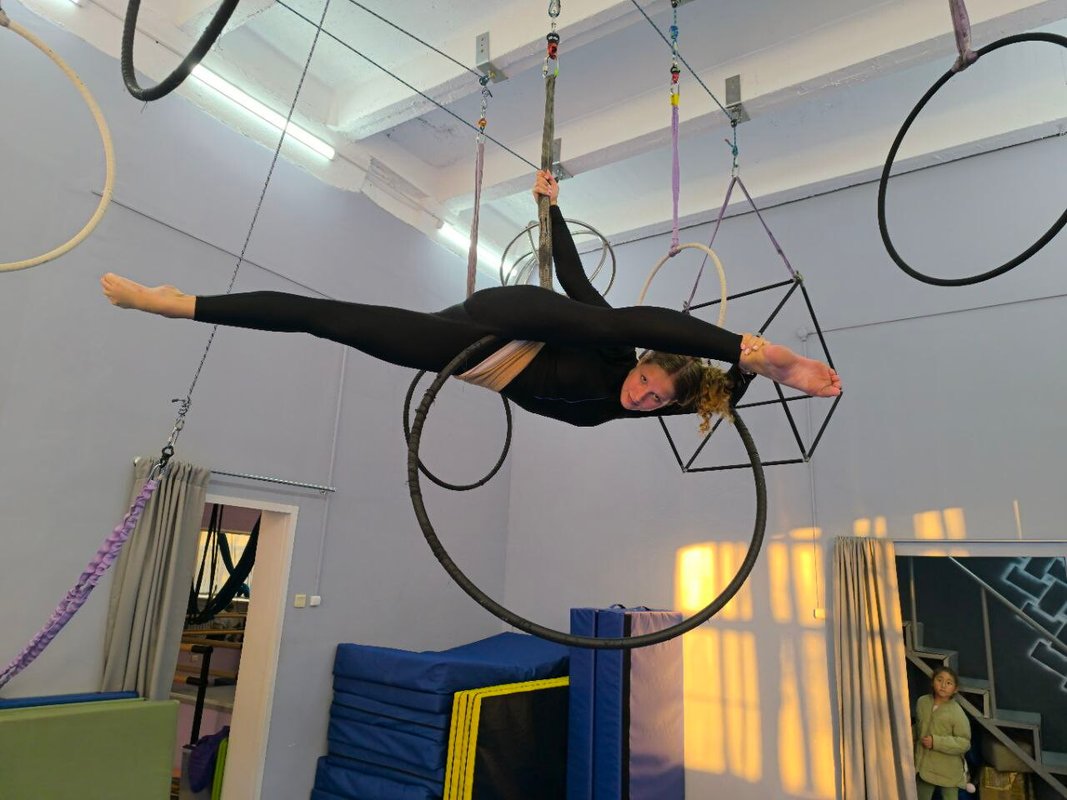 Моя дочь с удовольствием посещает школу воздушной гимнастики, потому что ей нравятся грация, гибкость и упражнения на кольце. Тренер Елена требовательна к детям и не допускает поблажек, что я считаю правильным. Дочке 14 лет, она сама общается с тренером, и я замечаю, как ей нравится заниматься и как она стремится к результатам. Дома у нас нет колец для тренировок, но я вижу ее усердие и рада, что она в восторге от каждого занятия.
