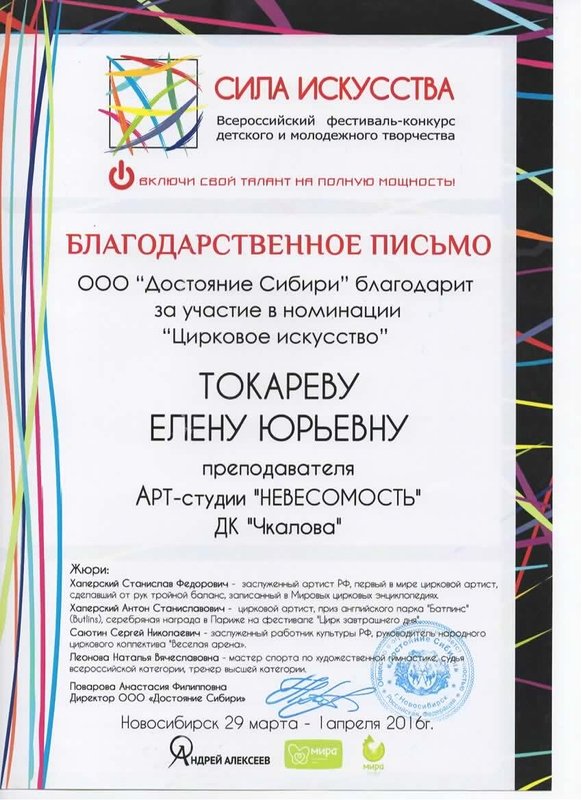 Цирковая школа мне действительно по душе - моя дочь давно хотела заниматься акробатикой и даже загадала это желание Деду Морозу. Для родителей главное, чтобы дети получали удовольствие от занятий. Тренер ей подходит, к тому же сам спорт очень зрелищный. Единственный минус - акробатика пока не признана официально и не присваиваются разряды. Из-за второй смены в школе удаётся ходить не всегда, но мы прилагаем усилия!